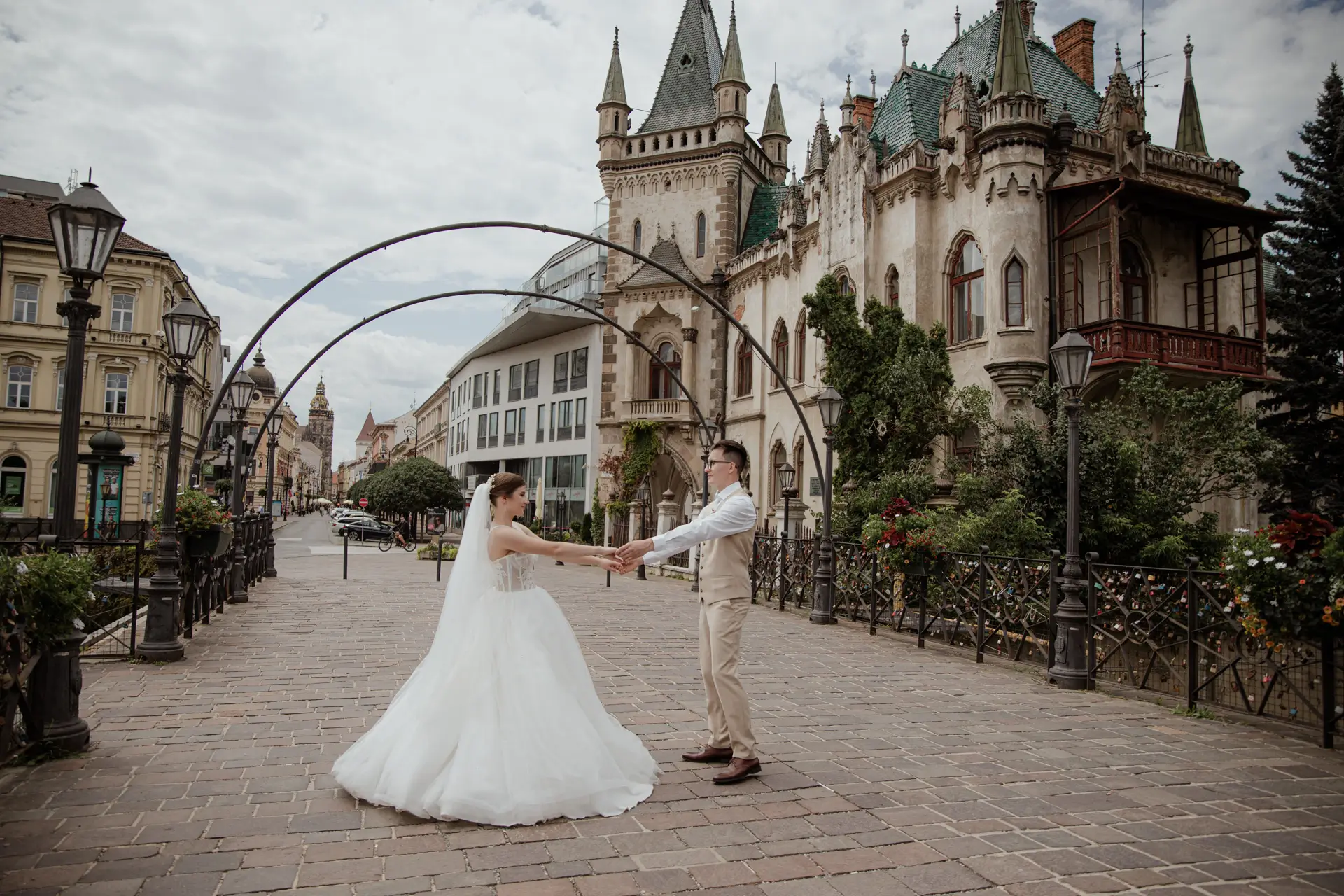 Toto bolo úžasné svadobné fotenie v centre Košíc. Pár si prial romantické fotografie s historickou architektúrou v pozadí.